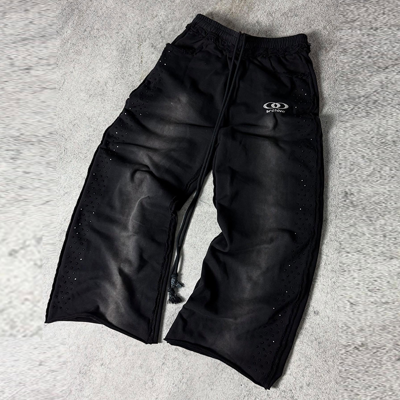 Retro Street Rhinestone Print Trousers
