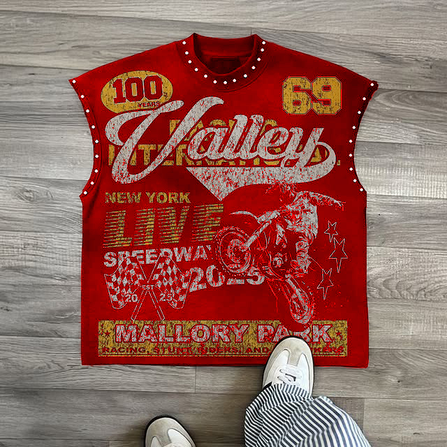 Rhinestone Printed Round Neck Sleeveless T-Shirt