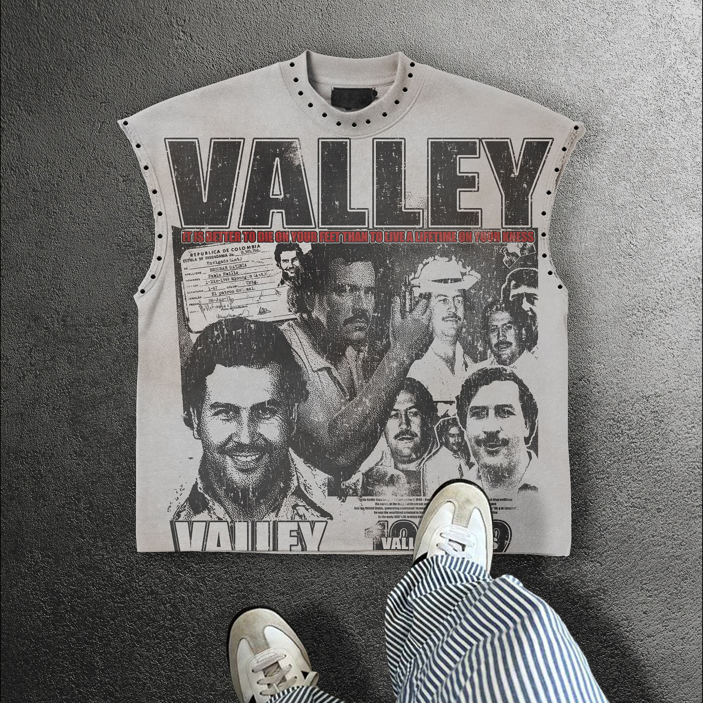 Sleeveless studded valley vest T-shirt