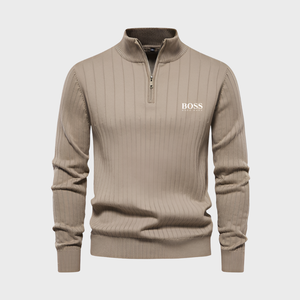 This sleek sweater blends classic elegance with modern functionality. Featuring a ribbed texture and a half-zip closure, it offers a sophisticated look that works for both casual and more dressed-up settings. Its flattering fit naturally highlights your style, while the soft fabric keeps you comfortable all day long.